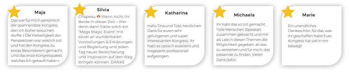 Die Themen reichen von “Finde deine Bildungslandschaft” bis zur transgenerationalen Weitergabe von Traumata. Diese Mal richten wir den Blick in die Zukunft, da wir merken, dass nicht jeder auf die kommenden Zeiten voller Neugier, Freude und Aufbruchstimmung blickt. Wir möchten mit dem Kongress genau zu diesen berechtigten Gefühlen des Aufschwungs - hinein in ein goldenes Zeitalter - beitragen. Und uns mit dir gemeinsam gut darauf vorbereiten!