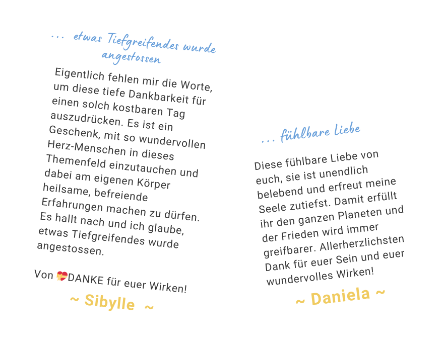 Aus der inneren und äußeren Krise, Verletzung, Wut, Verstrickung, Kontaktabbrüchen, Erbstreitigkeiten, körperlichen Symptomen, in die natürliche innere und äußere Harmonie, Verbundenheit, authentische gemeinsame Freiheit.
