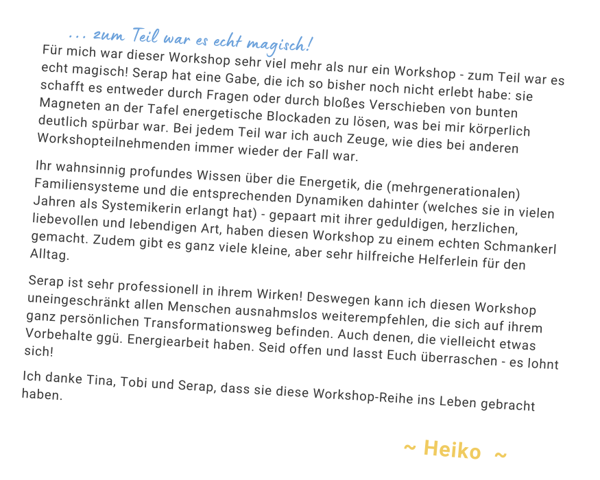 Wir blicken auf 25 meist unbewusst wirkende Kernverstrickungen in Familiensystemen mit dem Ziel sie aus dem unbewussten ins Bewusste zu holen und somit unsichtbar wirkende Lebensblockaden durch die Wiederherstellung der natürlichen Ordnungen aufzulösen.