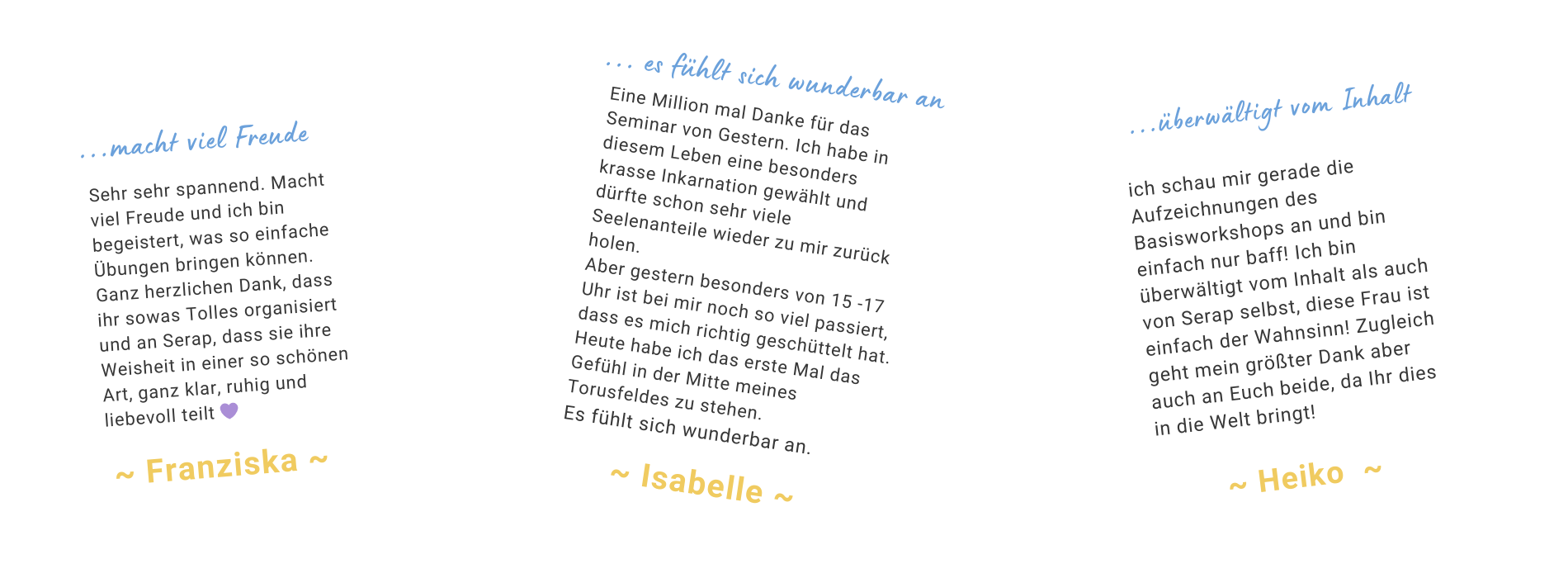 Wir begleiten dich gemeinsam: Serap wird die Workshop-Reihe inhaltlich leiten. Tina & Tobi sind bei den Workshops als Moderatoren dabei, sind insgesamt die Ansprechpartner und Organisatoren. Lass uns gemeinsam eine wunderbare transformative Reise erleben!